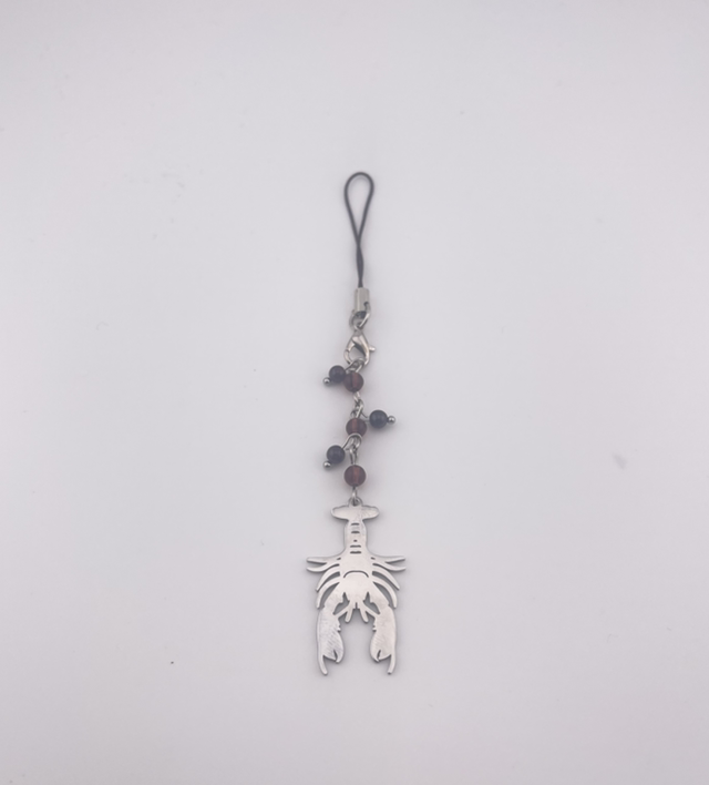 This handcrafted phonecharm feature lobster charm and glass beads.
